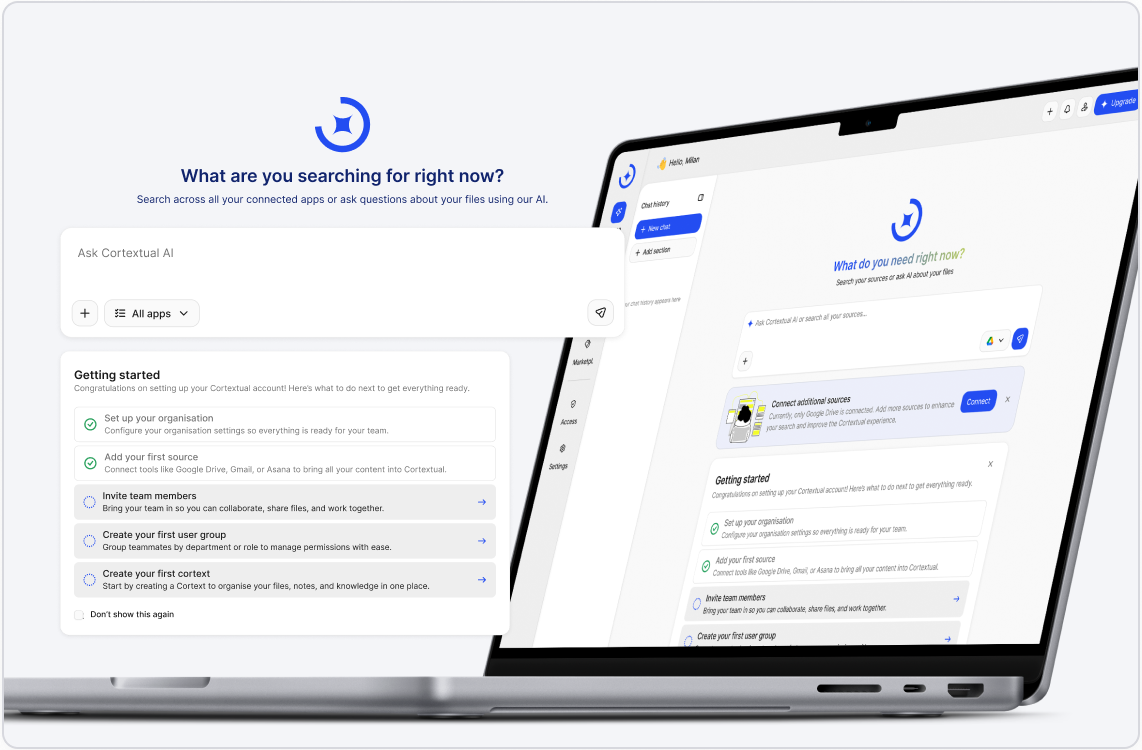 Every interaction inside Cortextual adds to your collective intelligence. As your teams use it, connect ideas, and build new AI chats, the system grows quietly, learning and improving with you.