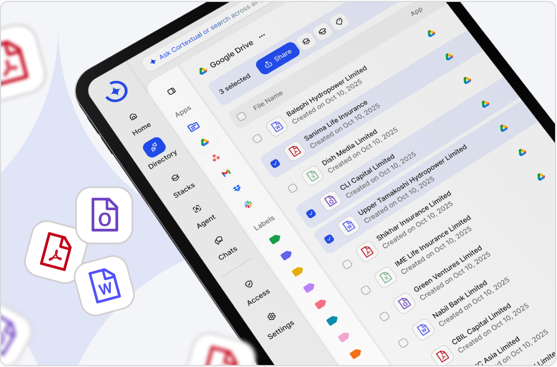 Stop digging through drives or pinging colleagues for links. With Cortextual, everything your team has written, shared, or built becomes instantly searchable and accessible.