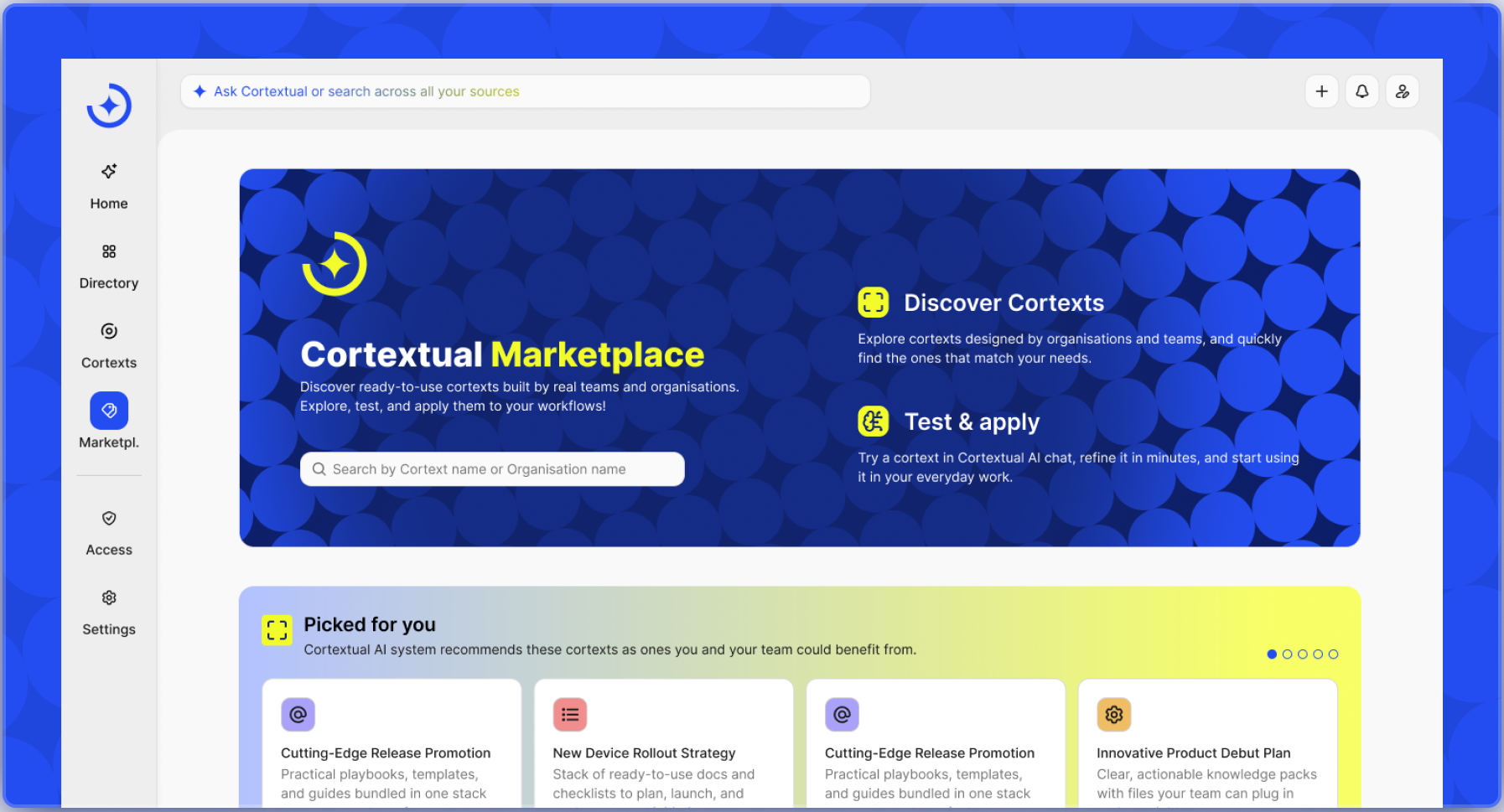 Welcome to the cortext marketplace: a new ecosystem where experts transform their knowledge into high-value cortexts, and organisations discover intelligence that they can plug directly into their workflows.