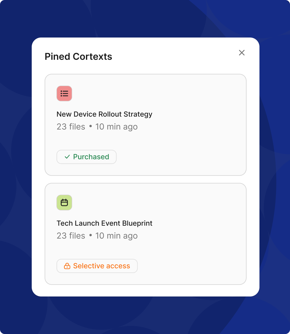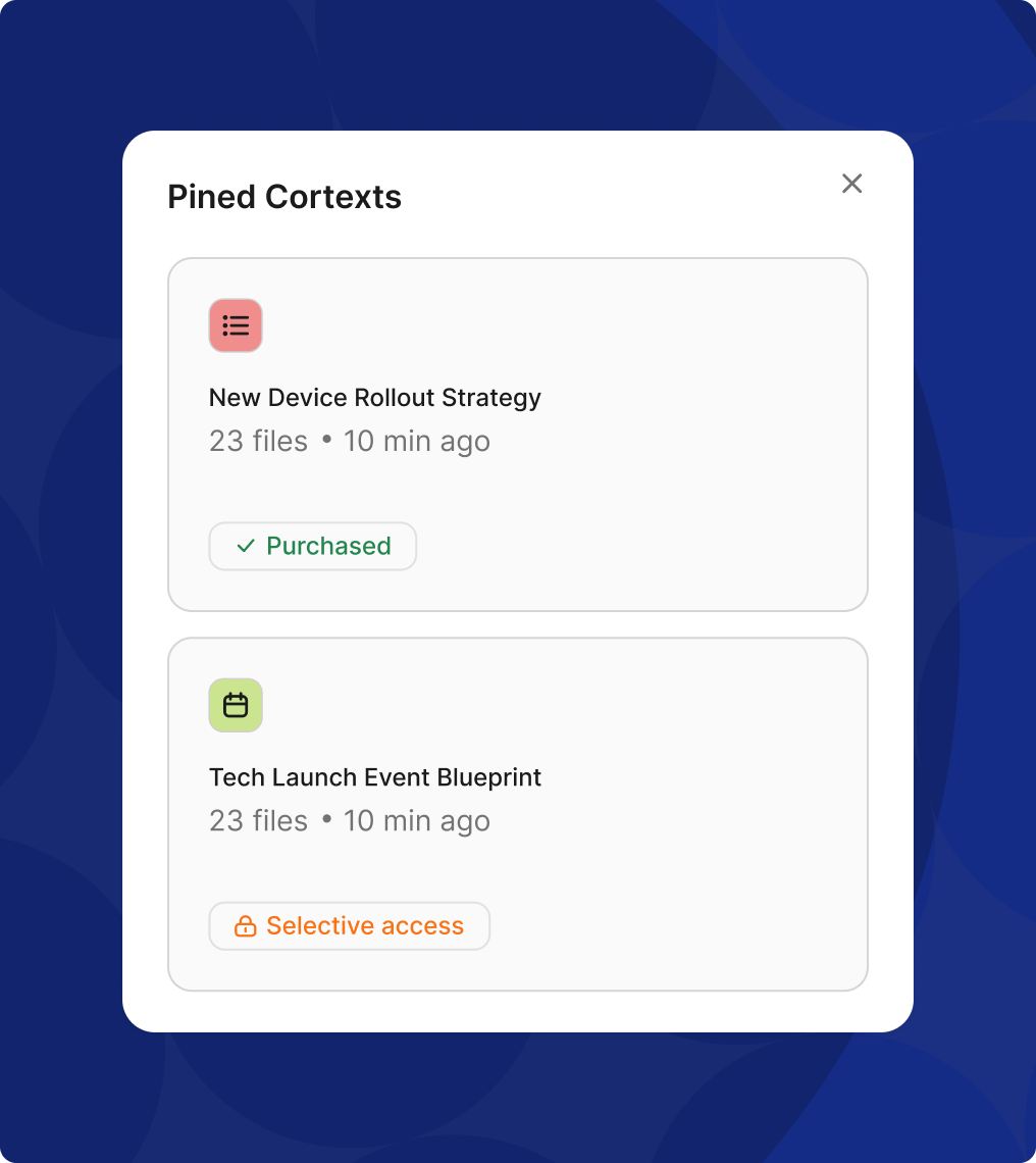 | Marketplace cortexts | External buyers | Free trial & purchase | Selling a niche expertise (e.g., “Serbia tax compliance guide”). |