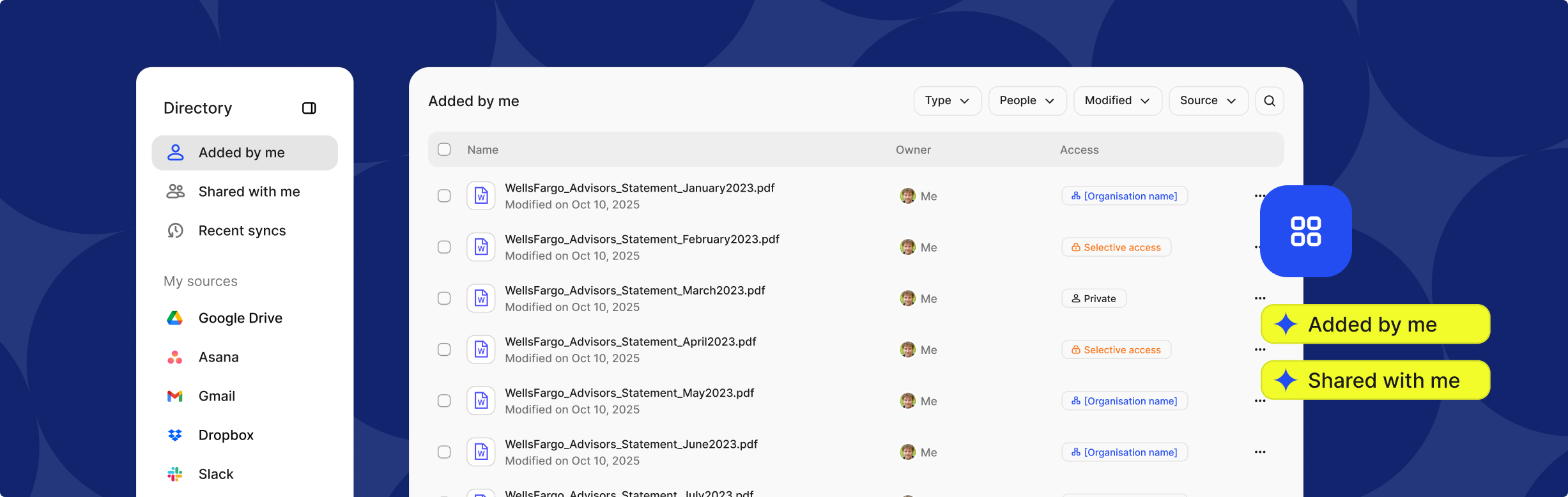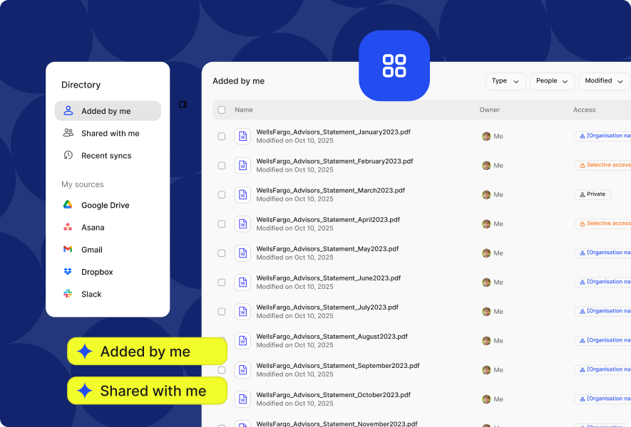 The directory instantly organises this metadata by type, collection, and permission level, creating a custom view for every user. - 4