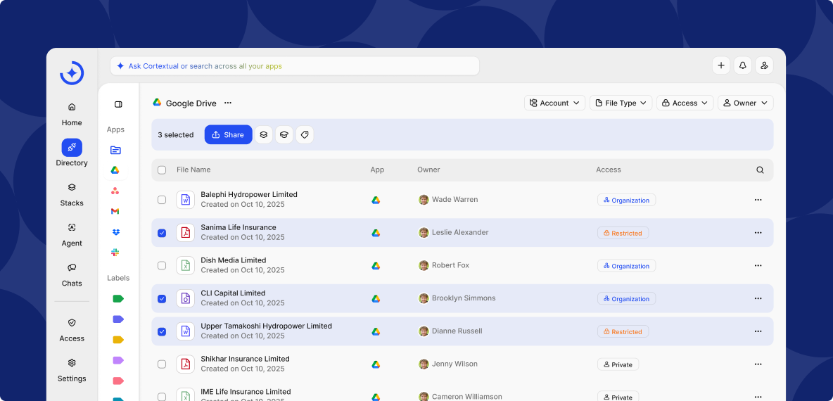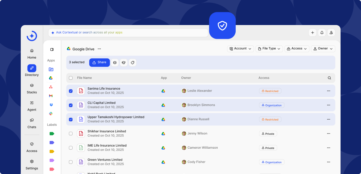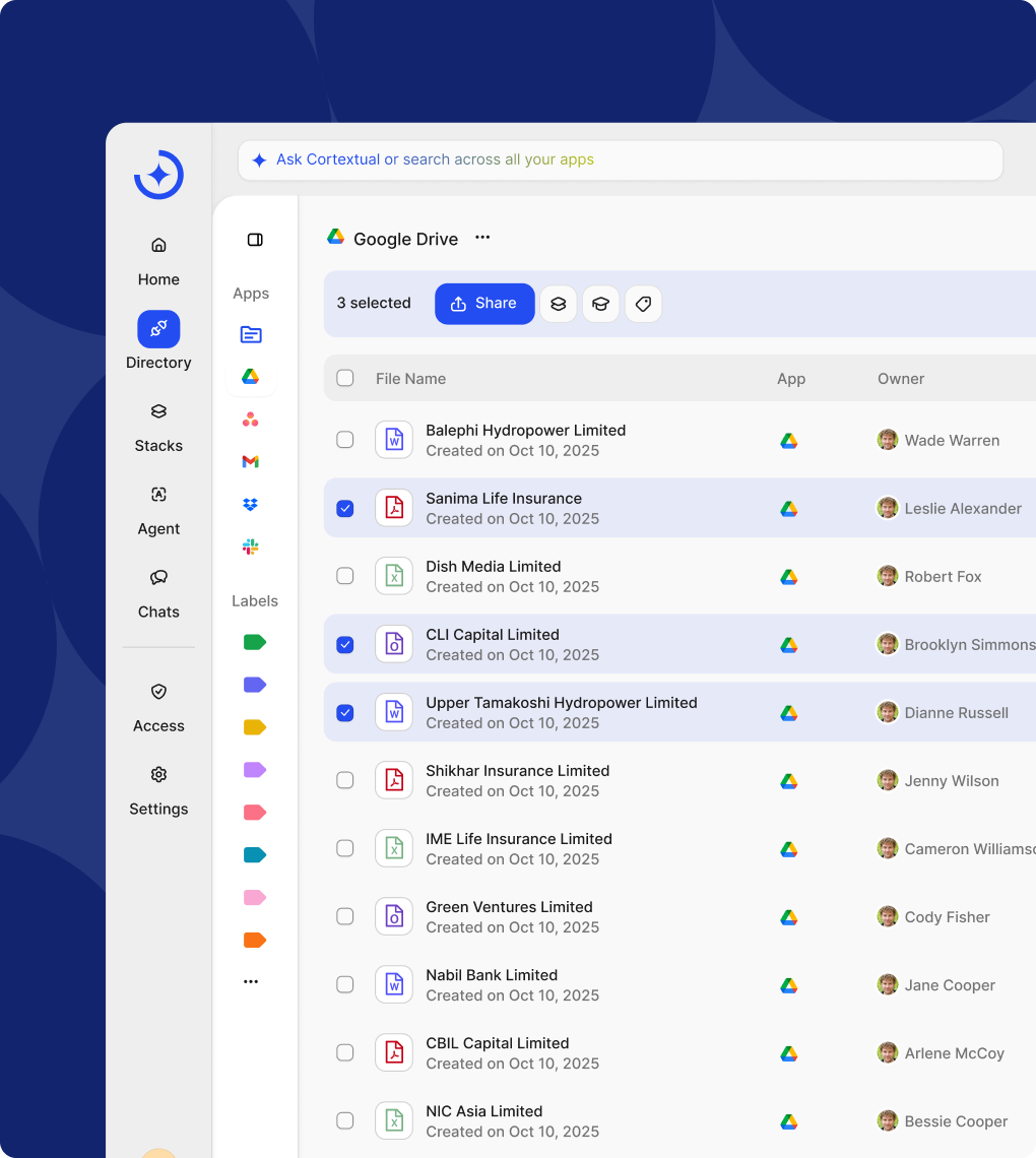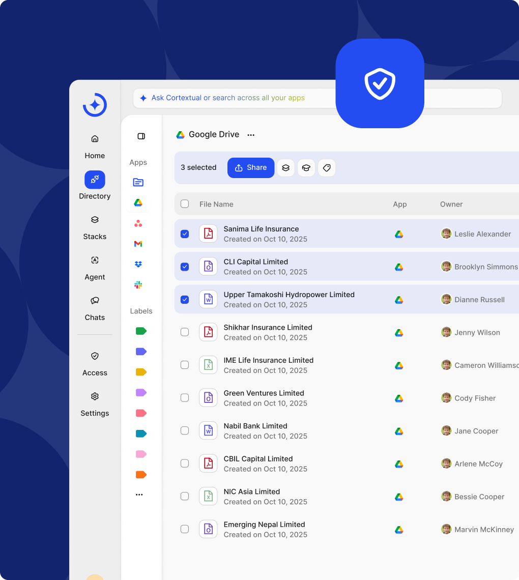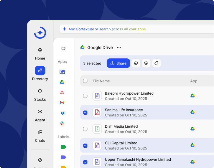 Cortextual mirrors your existing access model and permissions. If you can’t view a file in its native app, you won’t see it here - keeping data secure without extra admin.