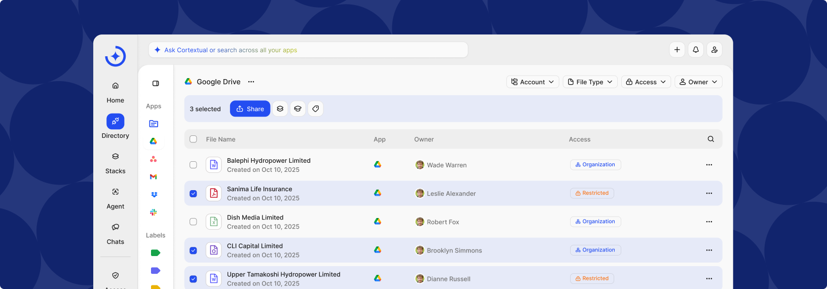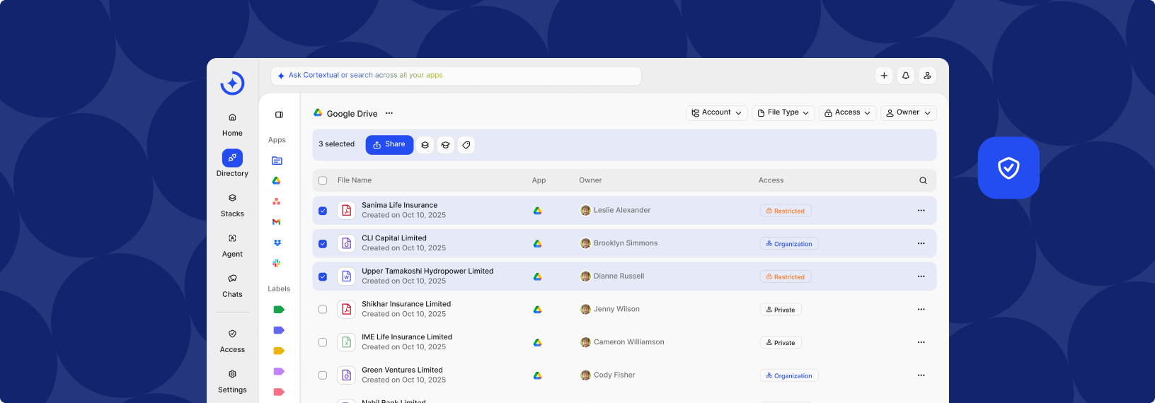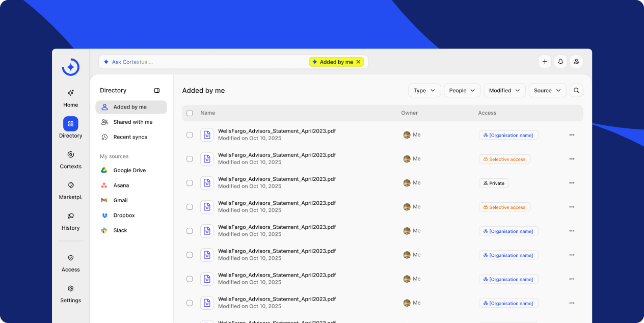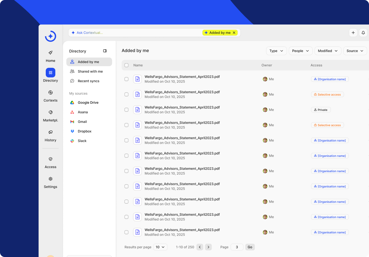 Cortextual mirrors your existing access model and permissions. If you can’t view a file in its native app, you won’t see it here - keeping data secure without extra admin.