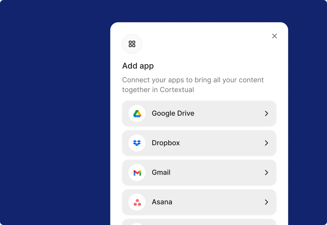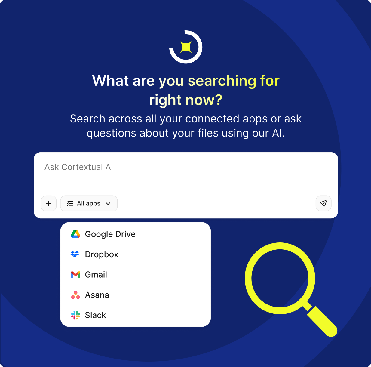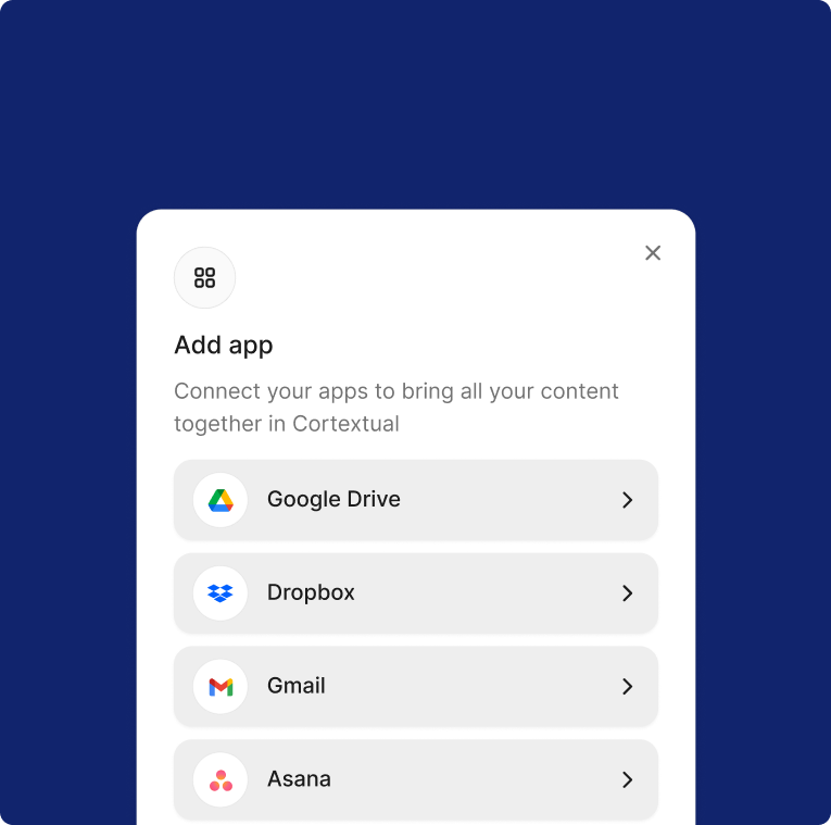 Cortextual brings all your organisation's knowledge into one place, so teams can ask questions and get clear, verified answers in seconds. Our search & AI chat provides fast, clear, and always permission-aware results.