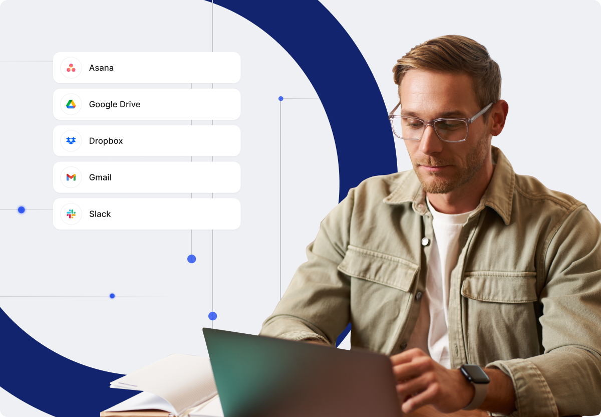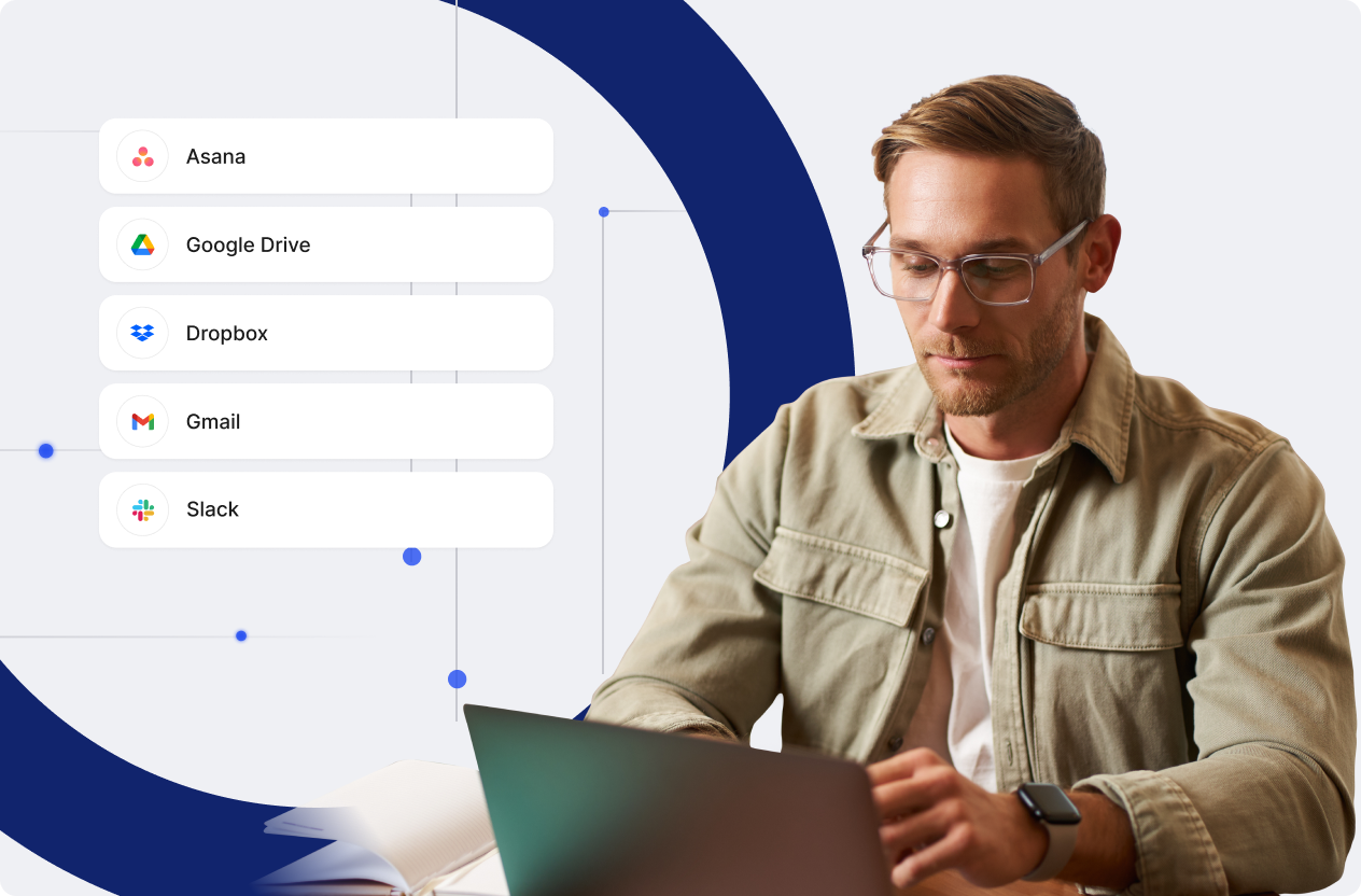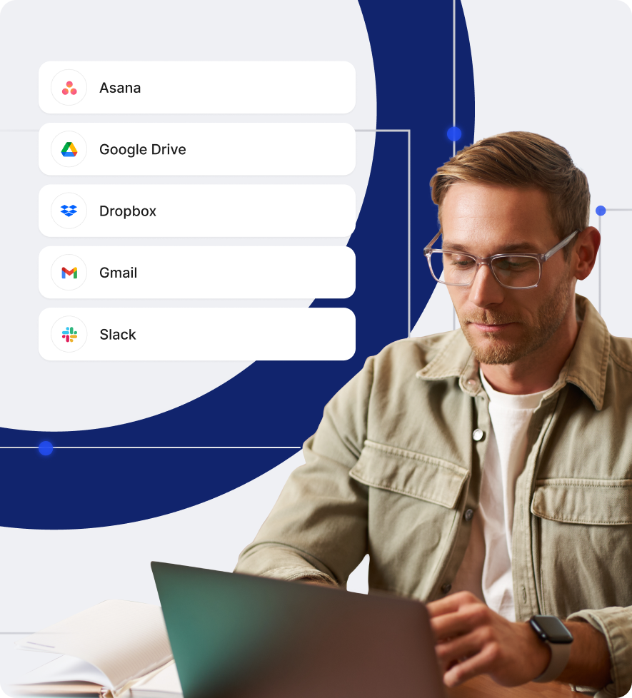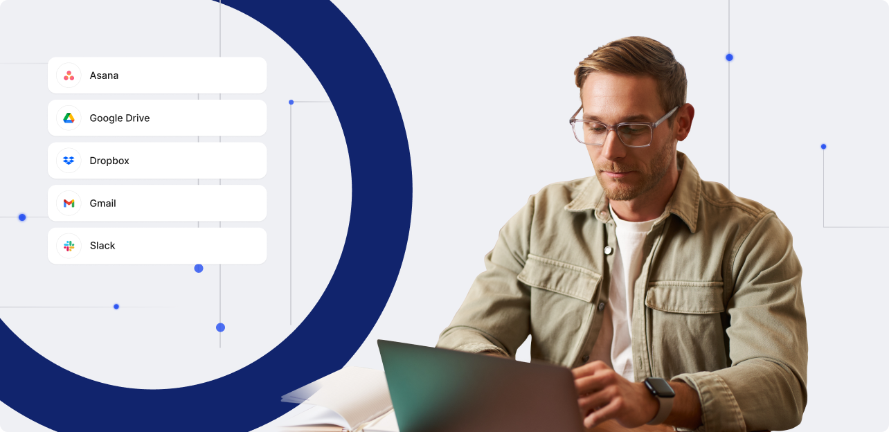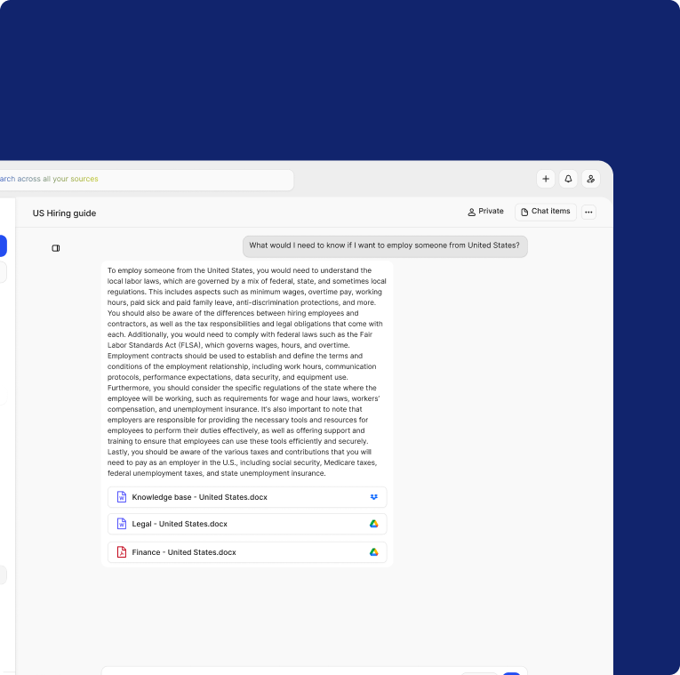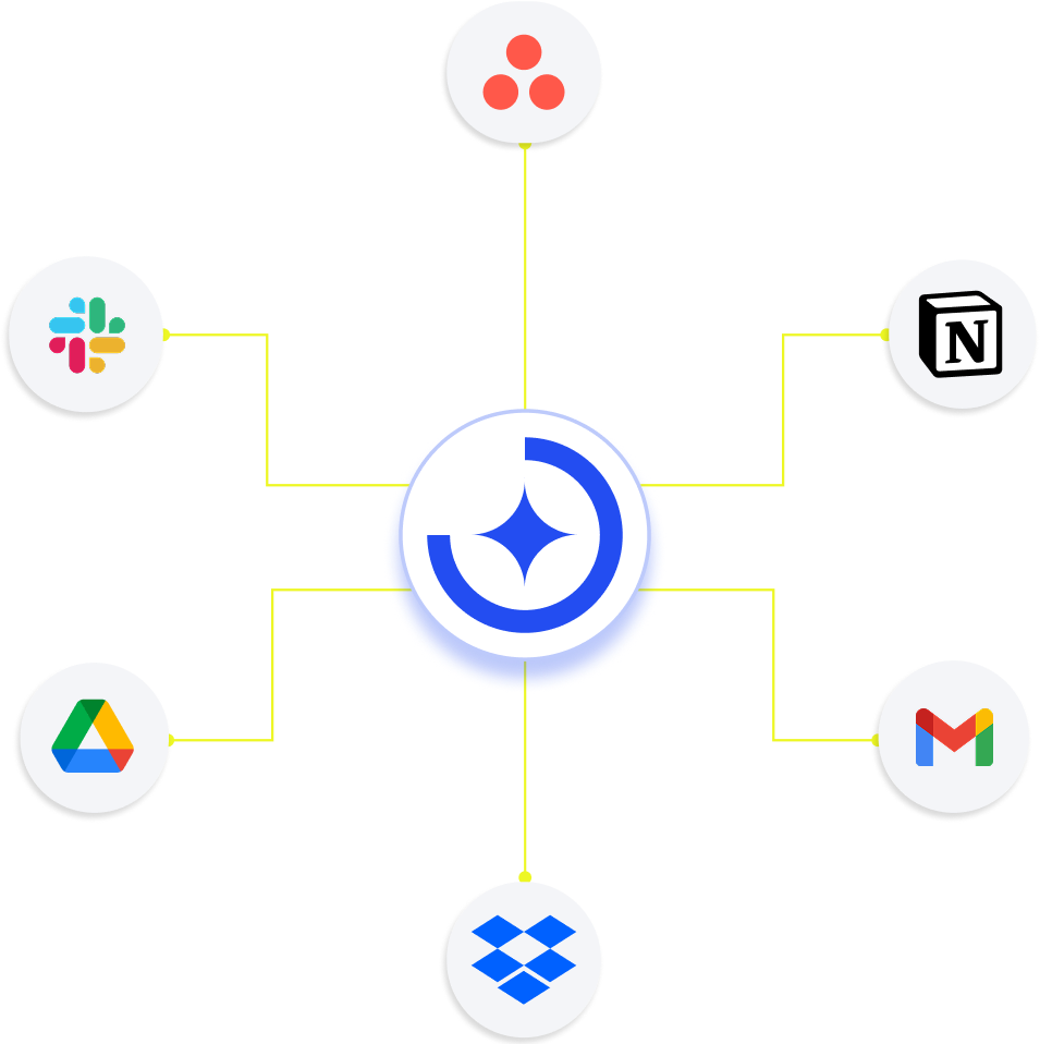 Docs, PDFs, spreadsheets, chats, emails, Notion pages, internal tools, and more.