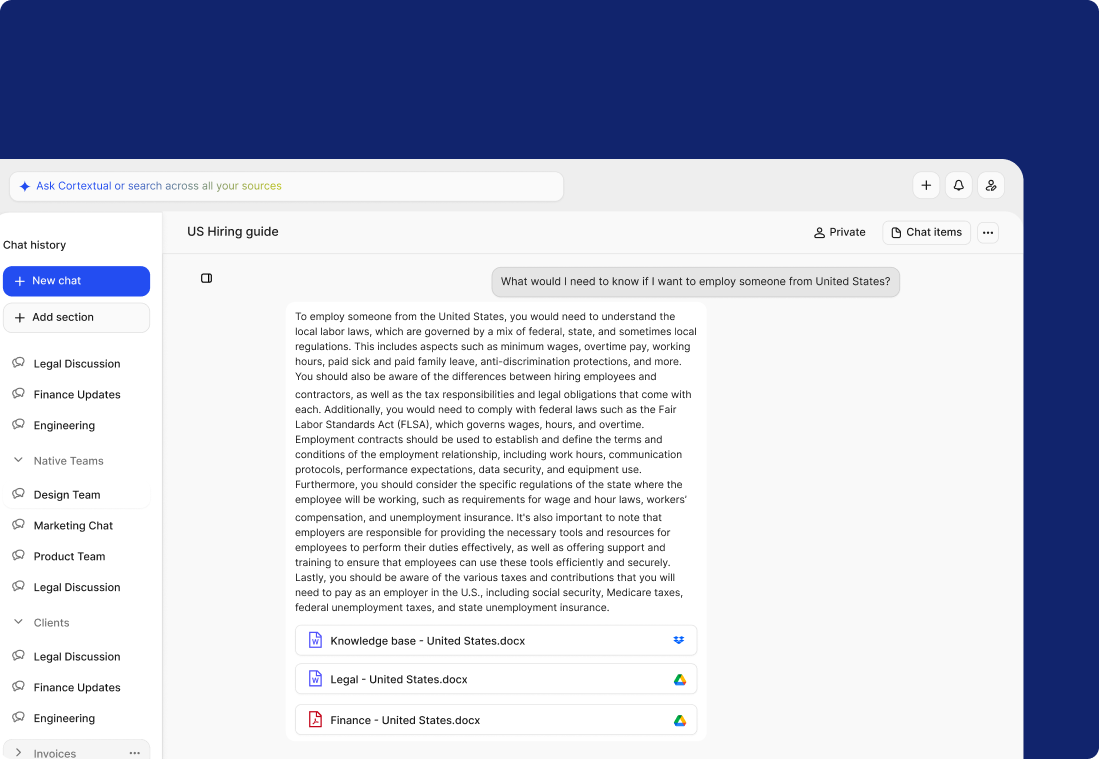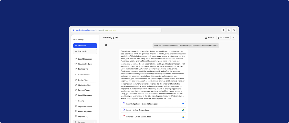 Most search & chat tools show you links. Cortextual shows you real answers, with the exact sources behind them.